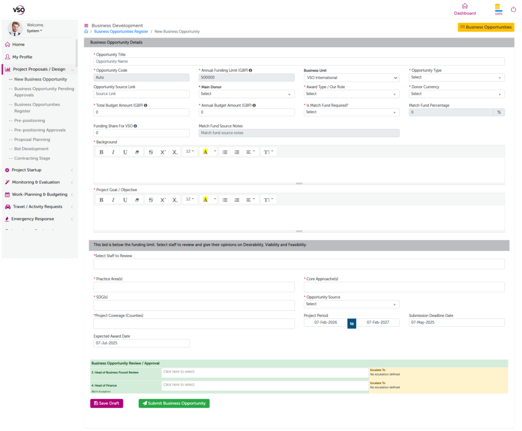 - Once all details are entered select approvers for each step and click Submit Business Opportunity button to launch it through the approval process.