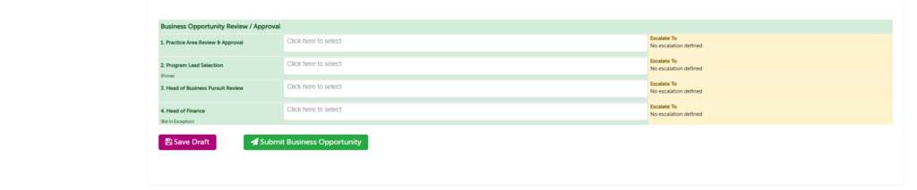 Business Opportunity Approvals Bid In Exception Doc navigation← Business Opportunity DetailsBusiness Opportunity Pre-positioning → Was this article helpful to you? No Yes How can we help? Name Email Subject Message
